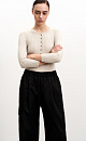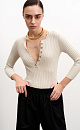 Wide rib-knit viscose jumper with 3/4 sleeves and button closure.