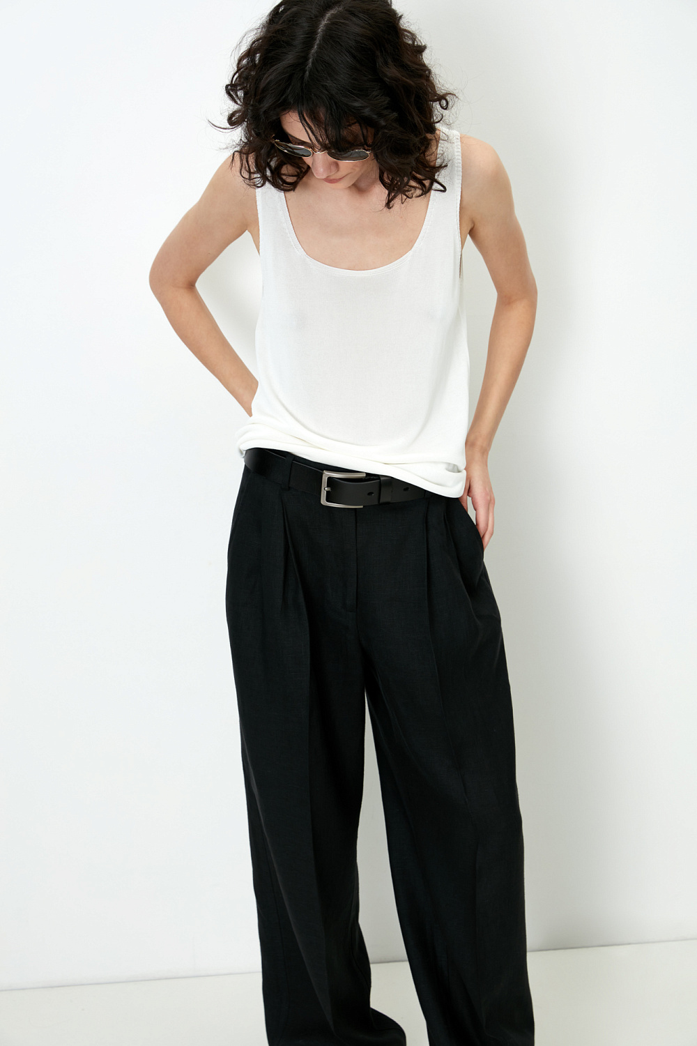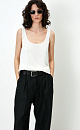 Knitted seamless 100% viscose top with thin straps.