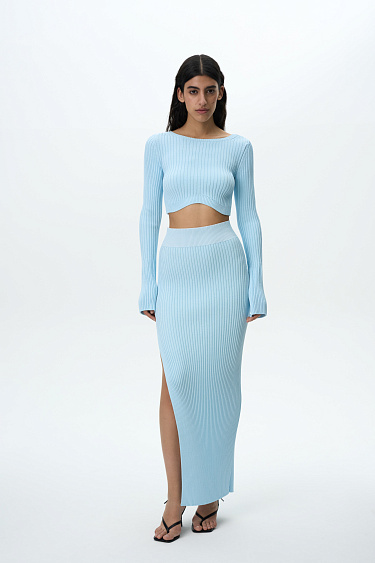 Ribbed knit bandeau top.