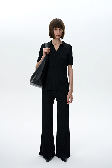 Ribbed viscose knit top. Fitted model with one sleeve.