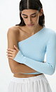 Ribbed viscose knit top. Fitted model with one sleeve.