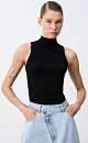 A top with a high collar emphasizes the shoulder line and visually lengthens the neck.
