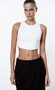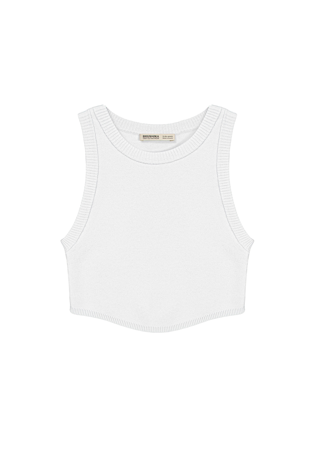 Polyviscose knitted crop top with an uneven hem and ribbed edges.