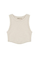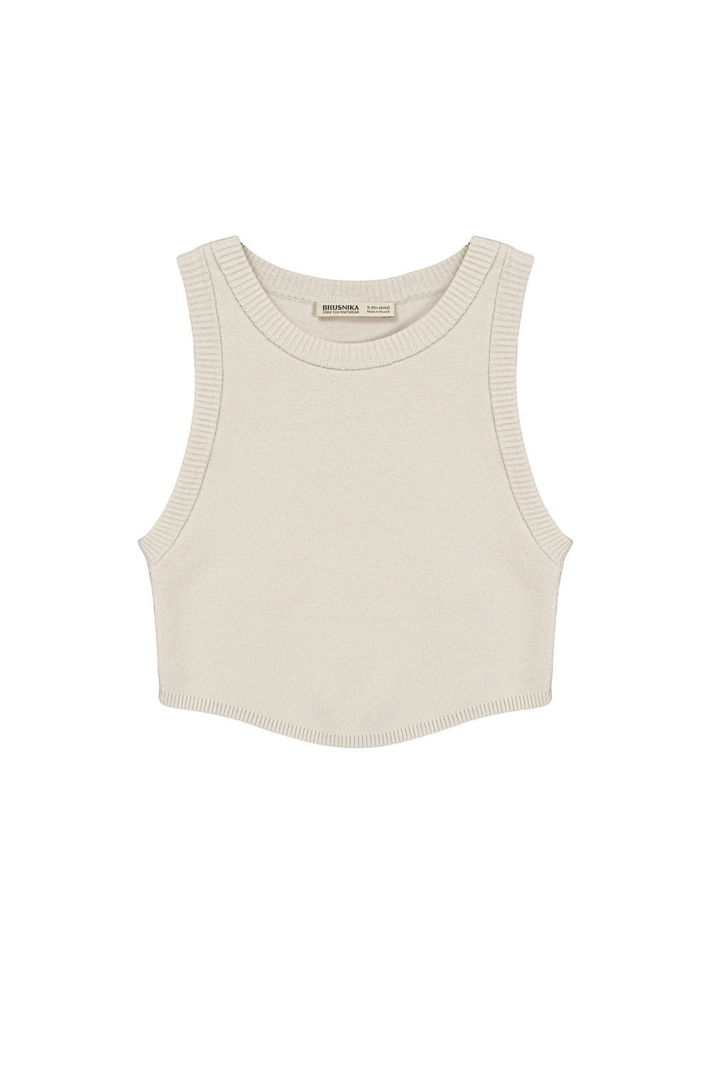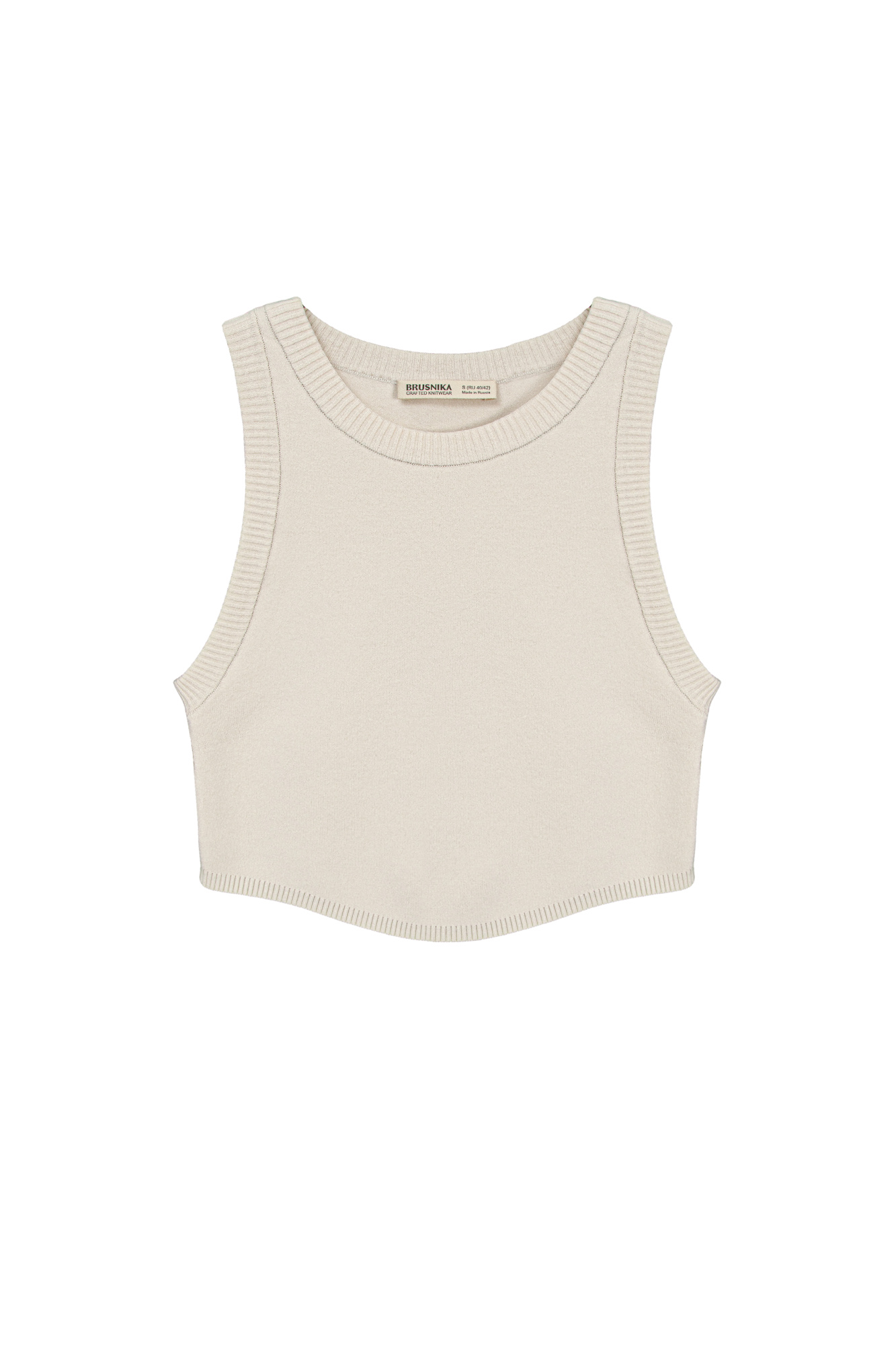Polyviscose knitted crop top with an uneven hem and ribbed edges.