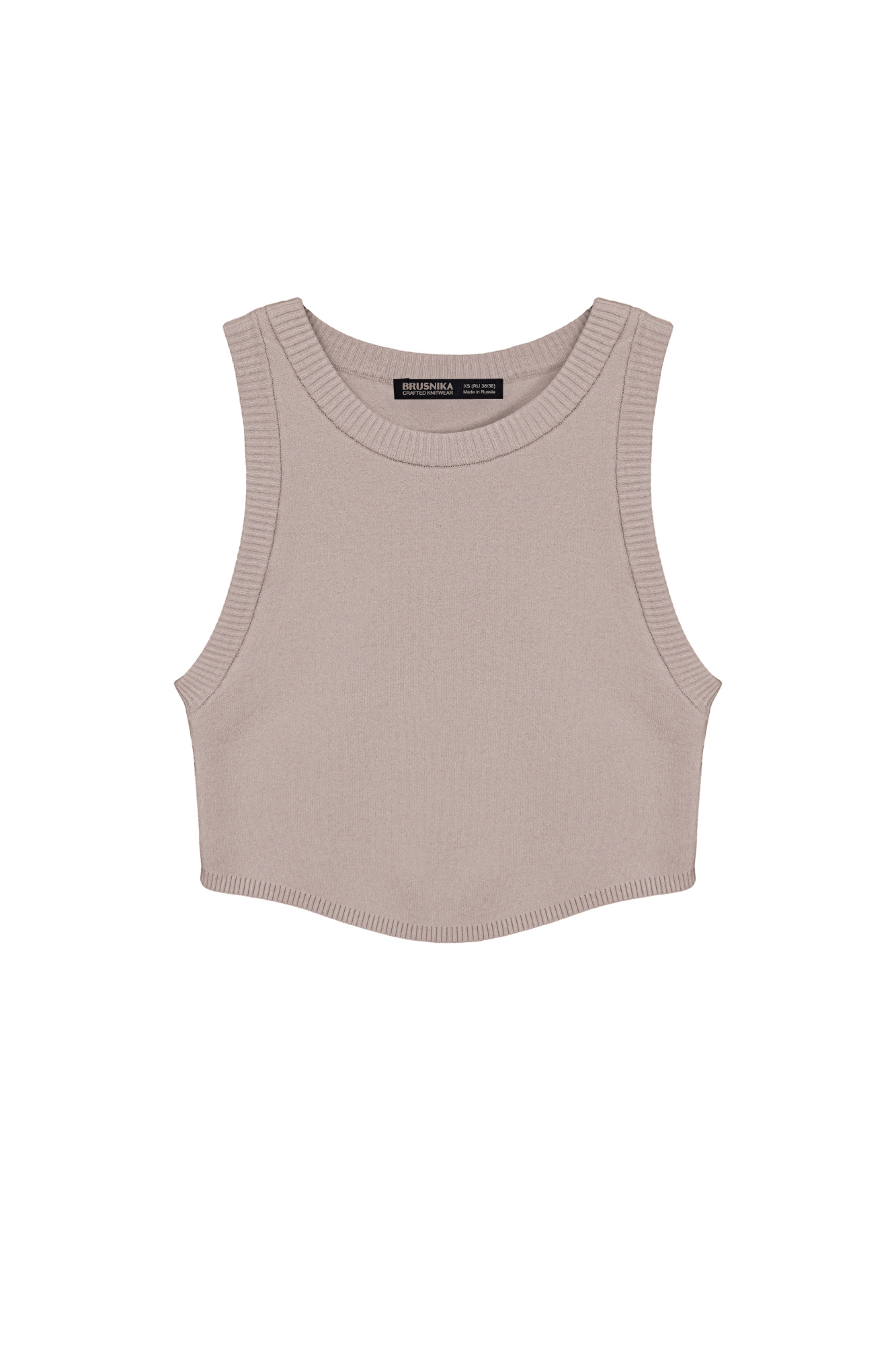 Polyviscose knitted crop top with an uneven hem and ribbed edges.