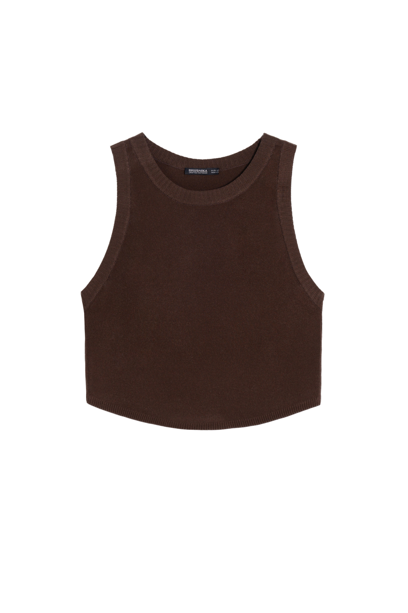 Polyviscose knitted crop top with an uneven hem and ribbed edges.
