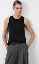 Sleeveless 100% cotton knitted top. Model of a fitted silhouette with a round neckline. The edges of the product are ribbed.