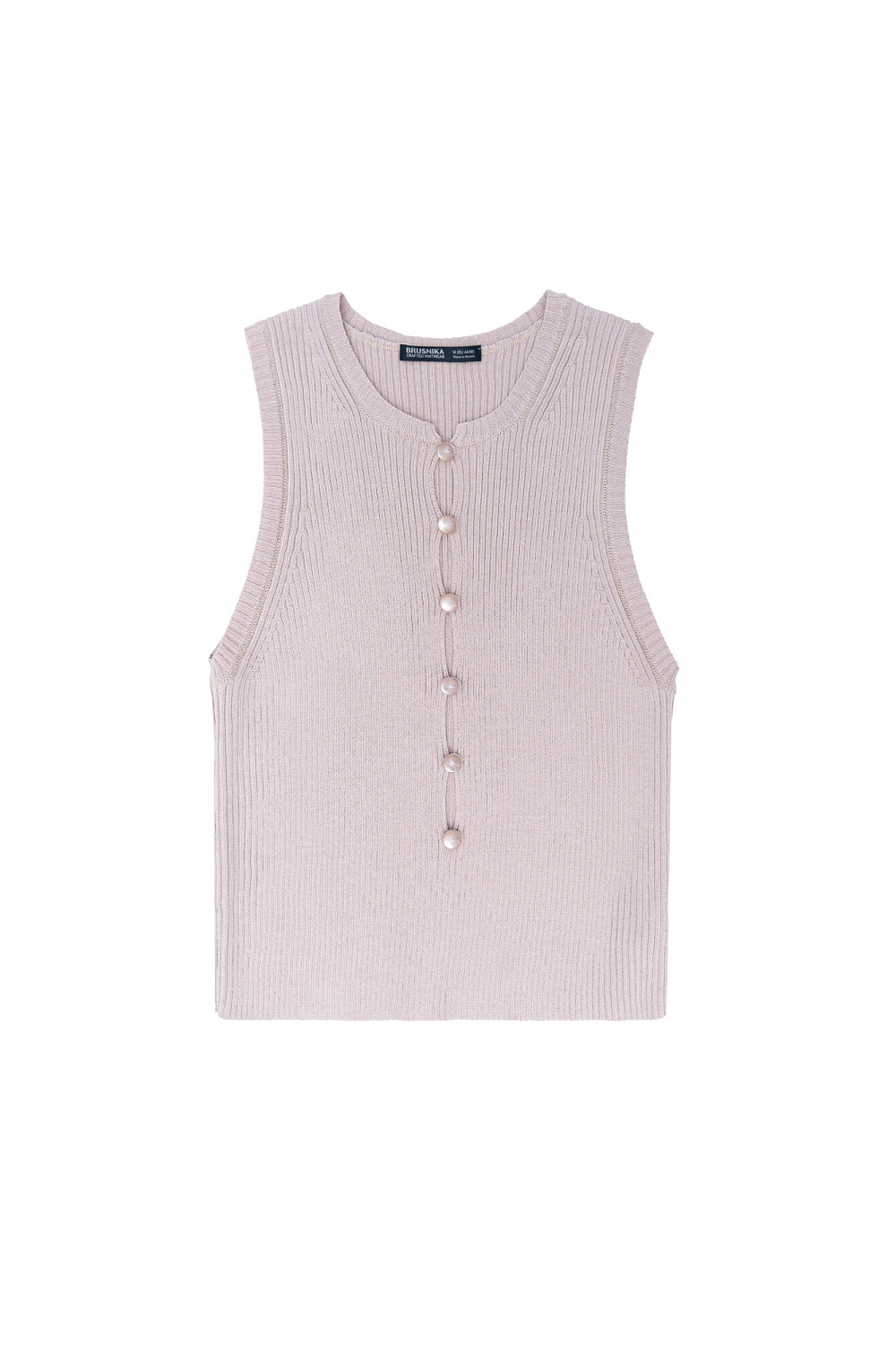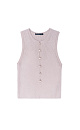 Sleeveless knitted low cut top with buttons.