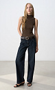 Viscose knit top. The model has a fitted silhouette, is sleeveless and has a low stand collar.
