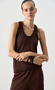 Knitted top made of cotton with added viscose. The model has a fitted silhouette, with a U-shaped neckline and a deep armhole.
