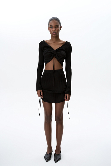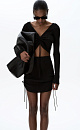 Long sleeve viscose top. V-neck and draped front with ties.