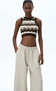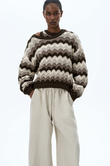 Cotton knitted top with a wavy pattern. The bottom of the top is made of elastic ribbed tape. You can complement the look with a jumper or skirt with a similar pattern.