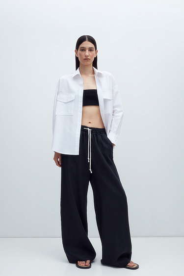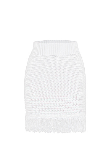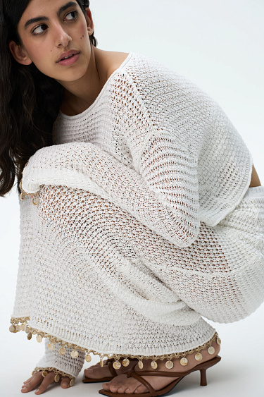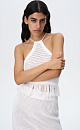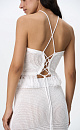 Sleeveless 100% cotton knit top with thin straps, lace-up back and fringed hem.