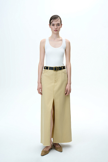 Ribbed viscose knit top. Open back with drawstring and thin straps.