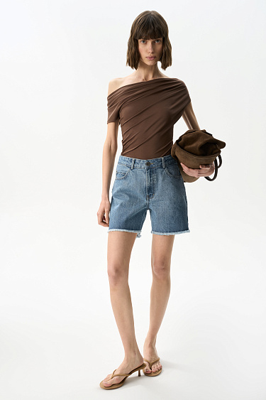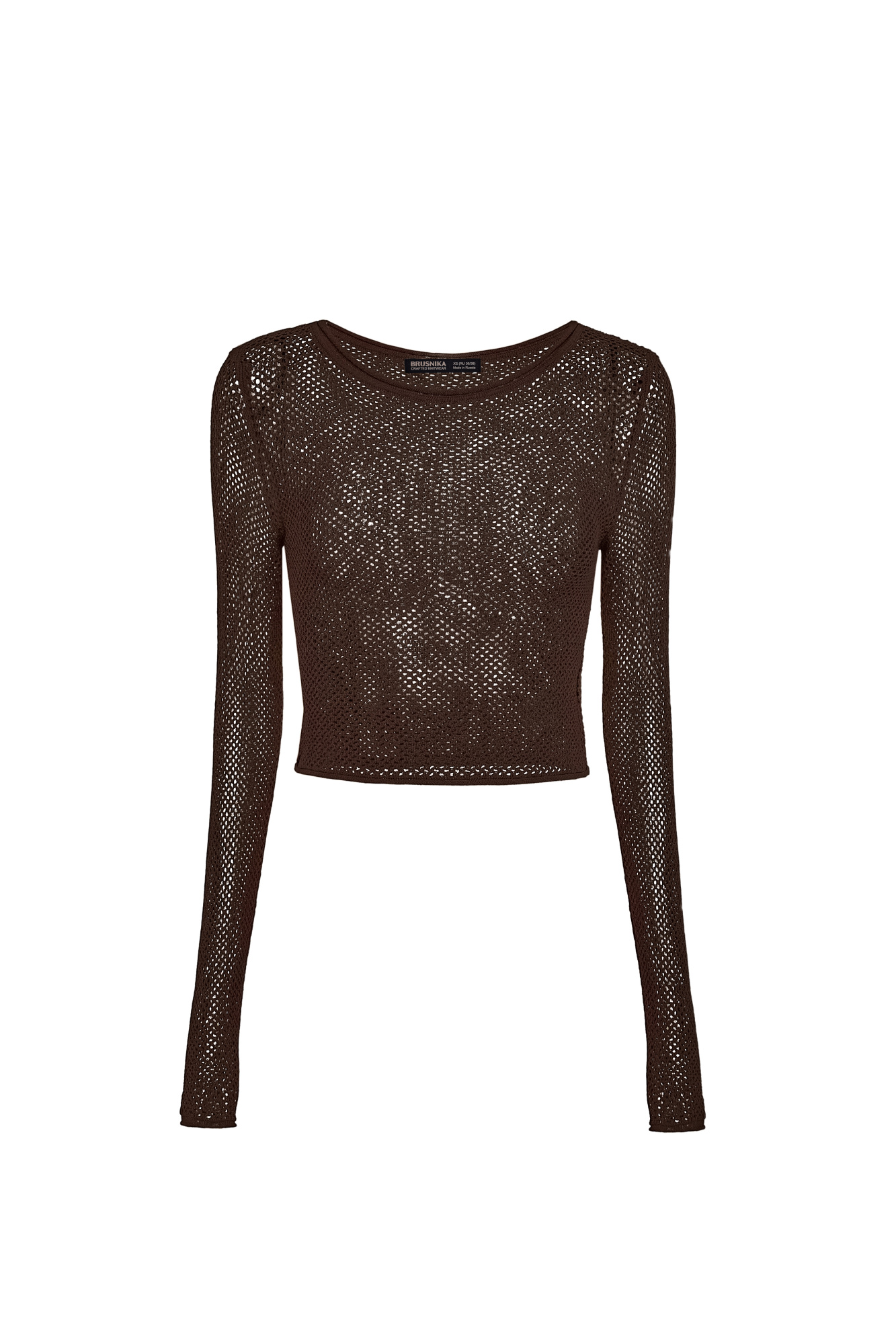 Knitted viscose mesh top with long sleeves.