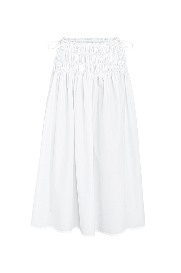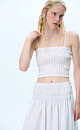 Top with elastic gathers and thin adjustable straps. You can complement the look with a matching skirt.