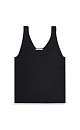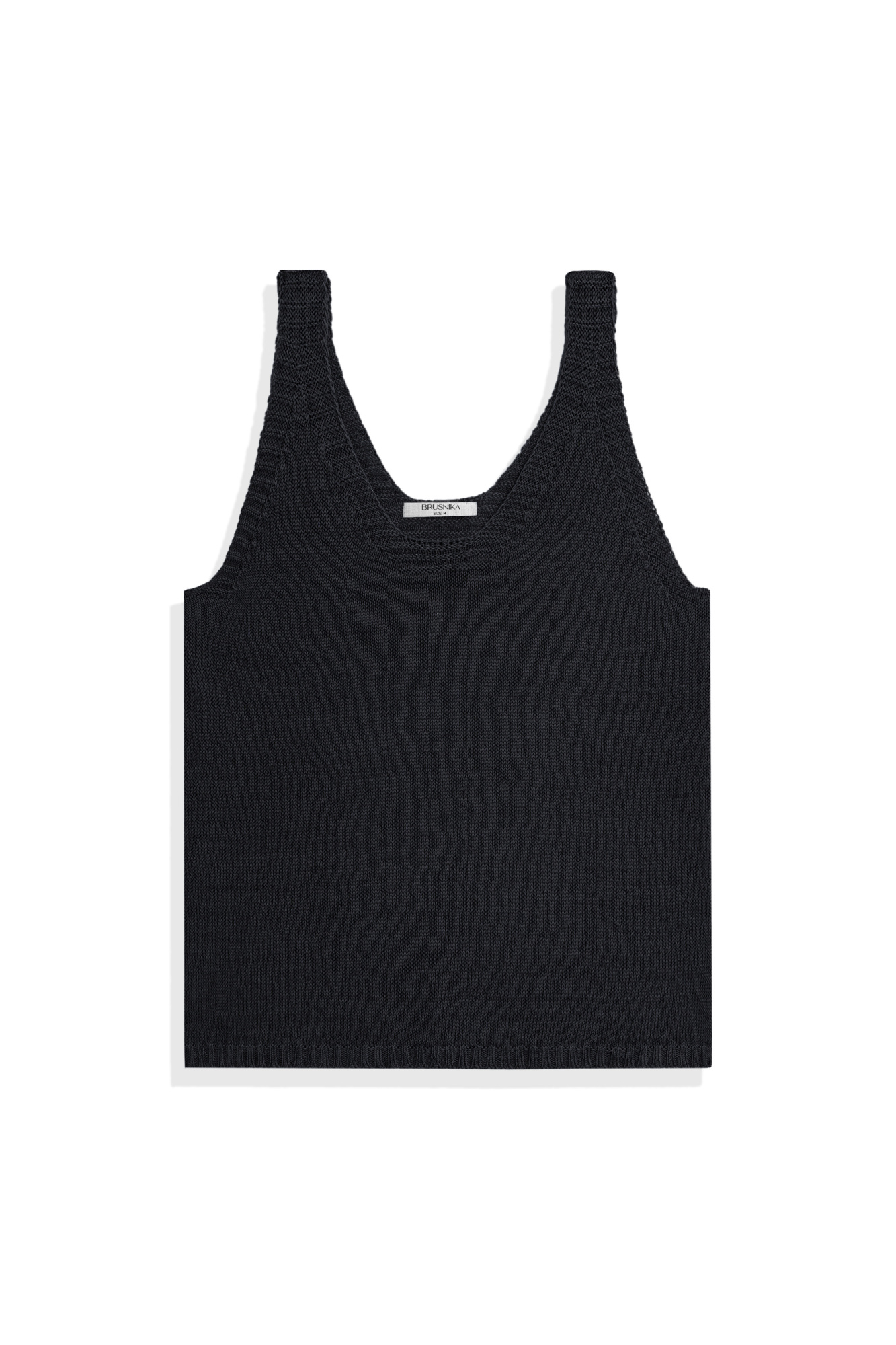 Knitted top made of 100% linen. The model has a straight cut, wide straps, a deep armhole and a U-shaped neckline. The edges of the product are ribbed.