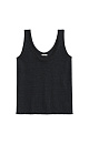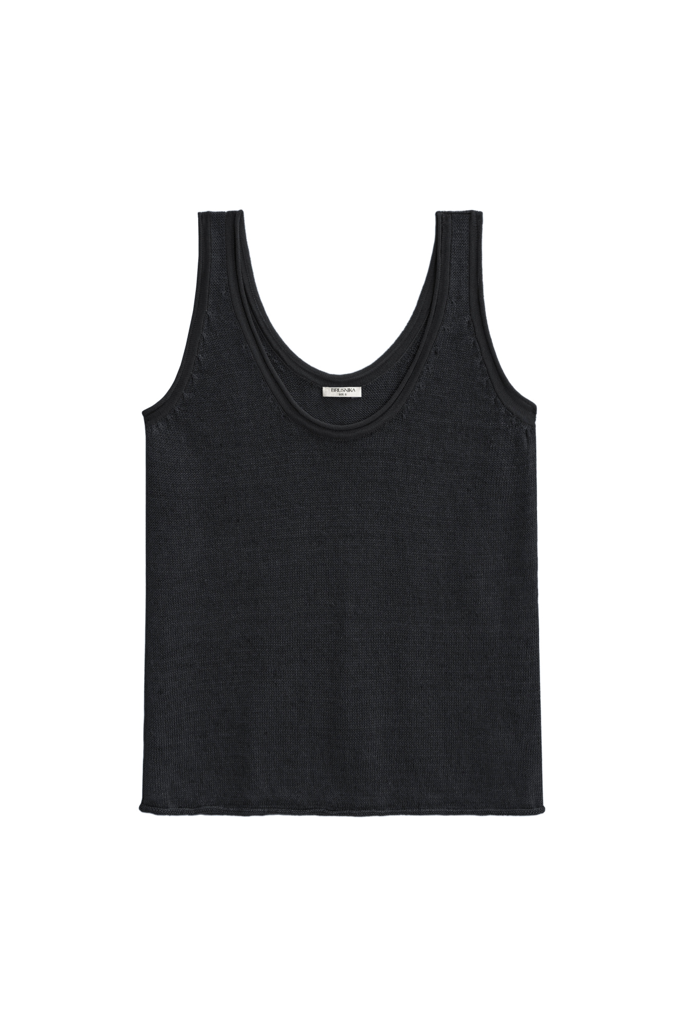 Knitted top made of 100% linen. The model has a straight cut, wide straps, a deep armhole and a U-shaped neckline. The edges of the product are ribbed.