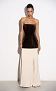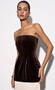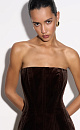 An elongated velvet corset. A fitted silhouette model with a hidden zipper at the back. The product is lined.