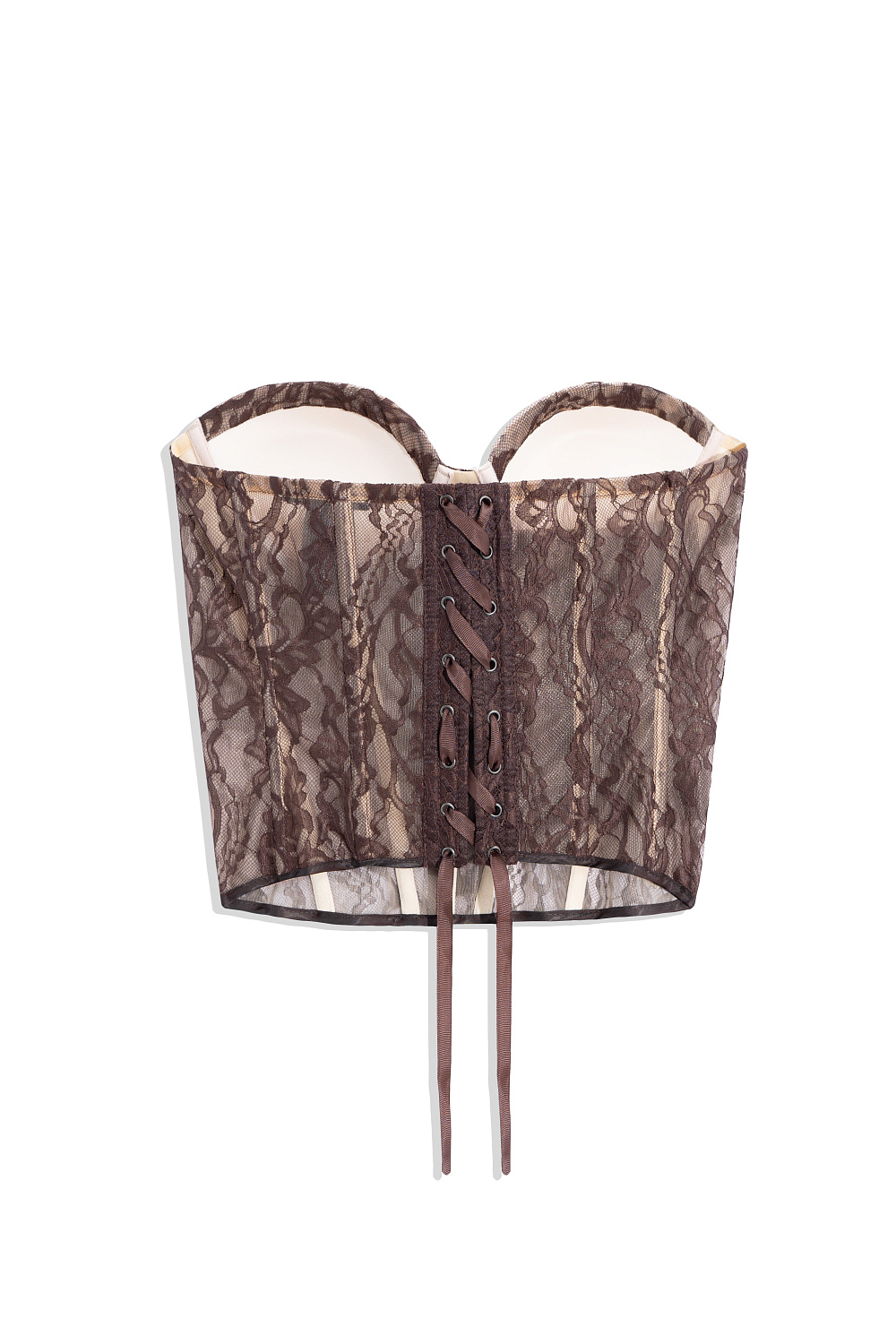 Corset made of thin lace with cups. Lace up back.