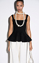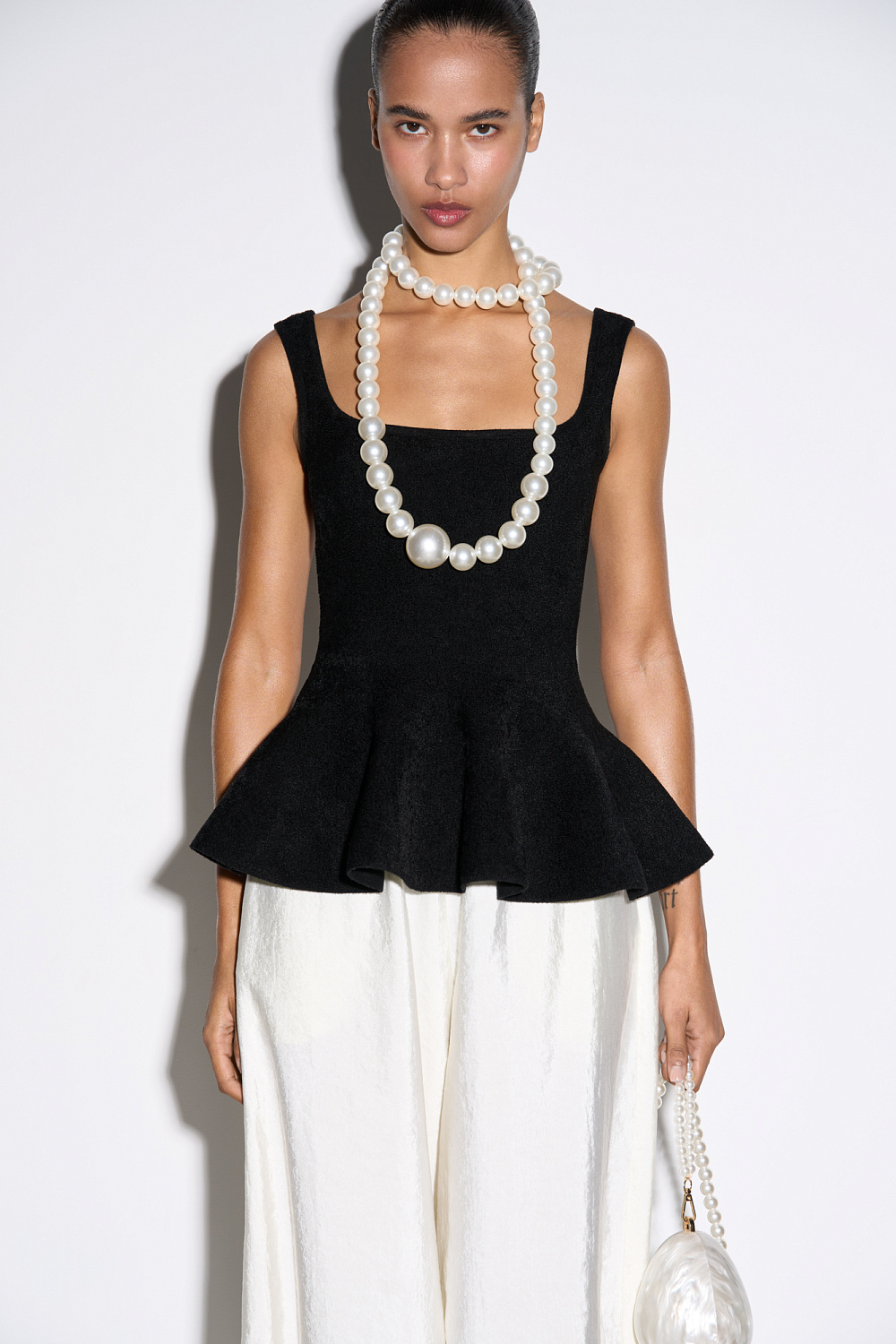 Knitted corset made of thick viscose. Model with wide straps and peplum. Zip fastening at the back. The product is unlined.
