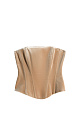 Velvet corset with lacing on the back. The model has a fitted silhouette with vertical darts. The product is lined.