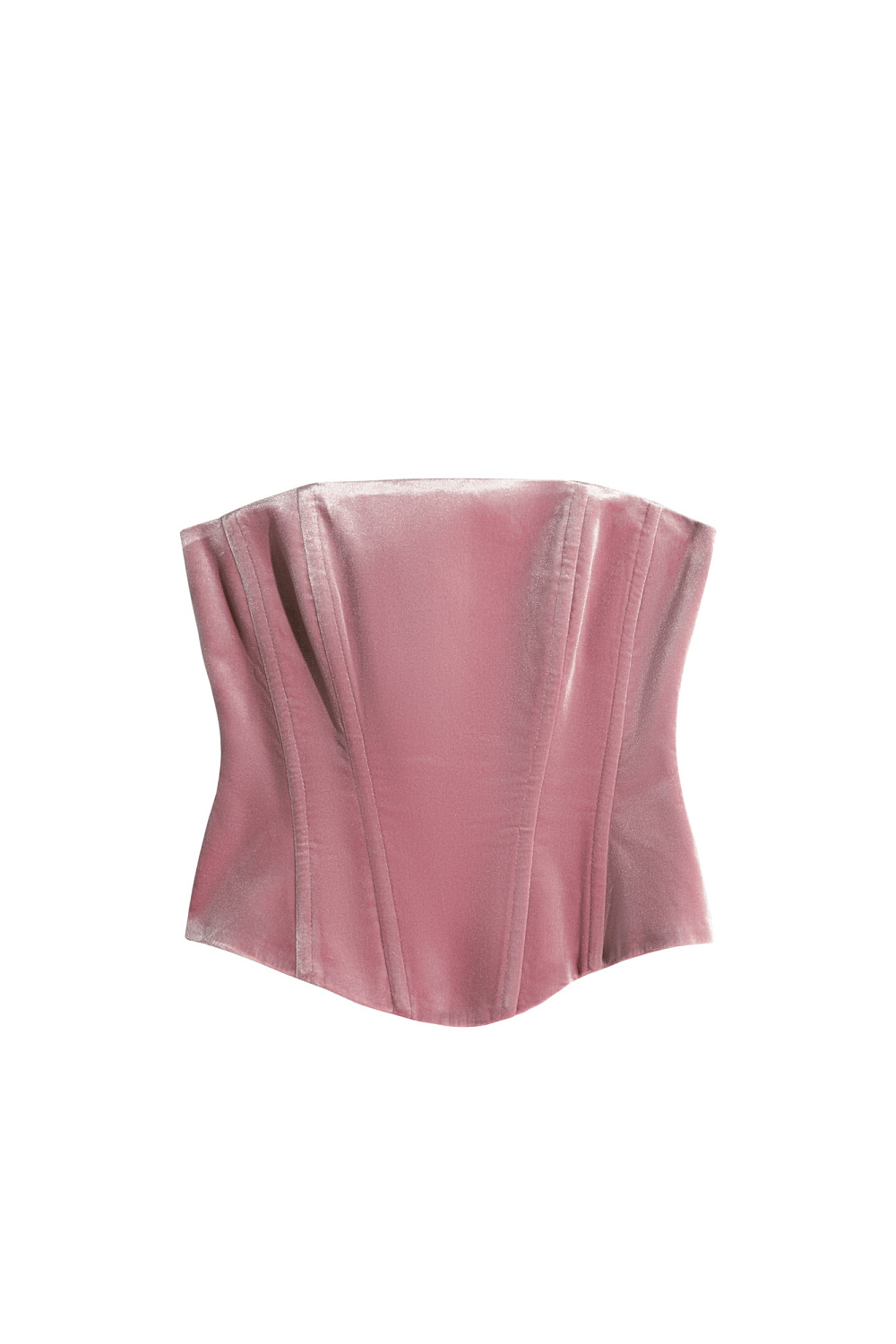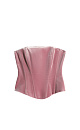 Velvet corset with lacing on the back. The model has a fitted silhouette with vertical darts. The product is lined.