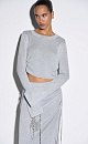 Metallic thread crop top, round neckline and adjustable drawstrings on the sides. Ribbed edges.