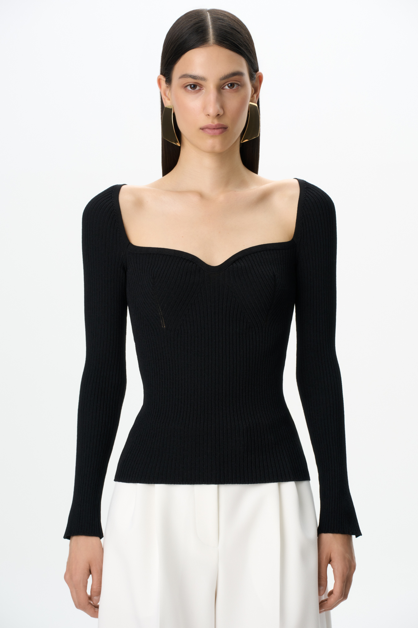 Knitted top with long sleeves and an open neckline.
