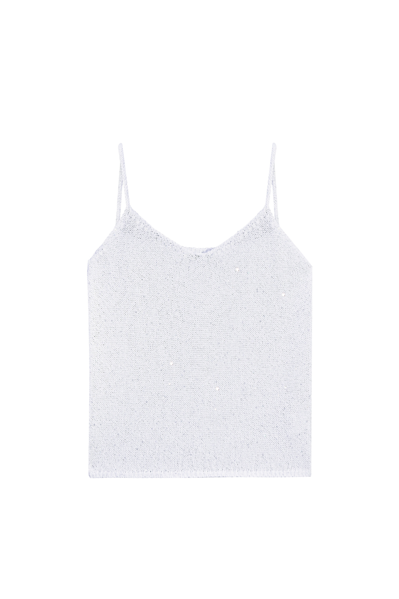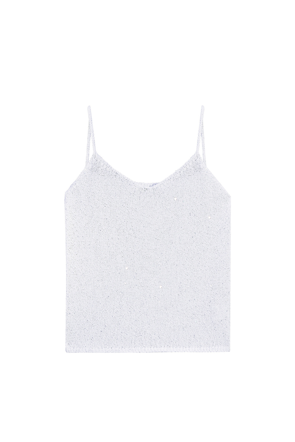 A poliviscose knit top with thin straps and holographic sequins.