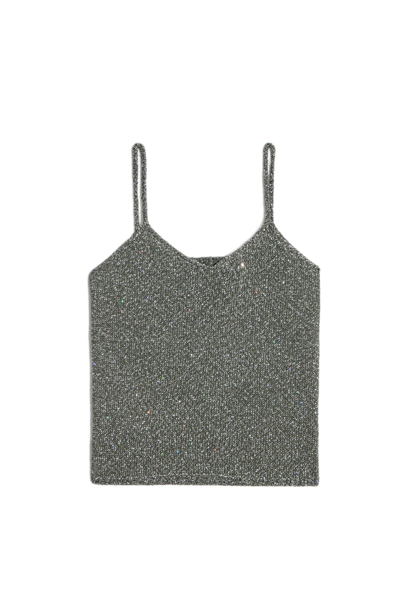 A poliviscose knit top with thin straps and holographic sequins.