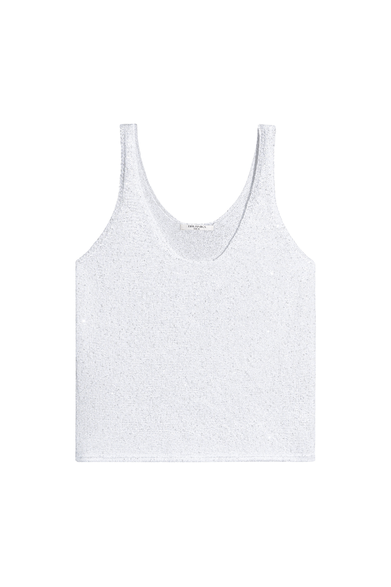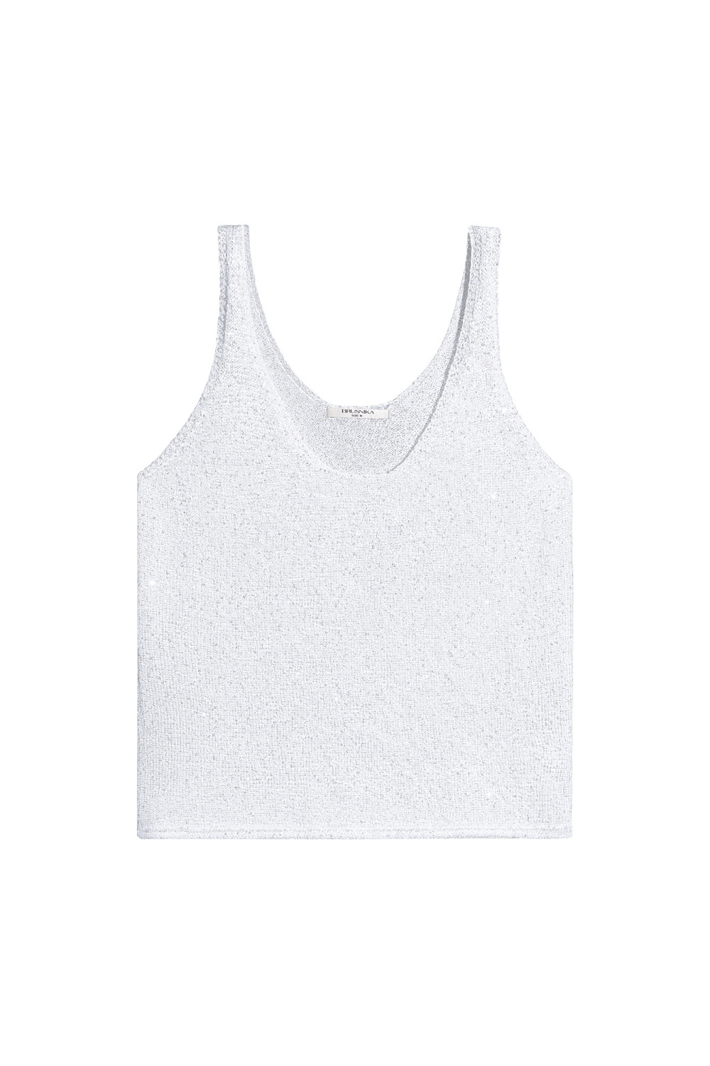 Cotton knit top with sequins. Straight-cut model with straps and a deep neckline.