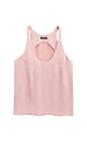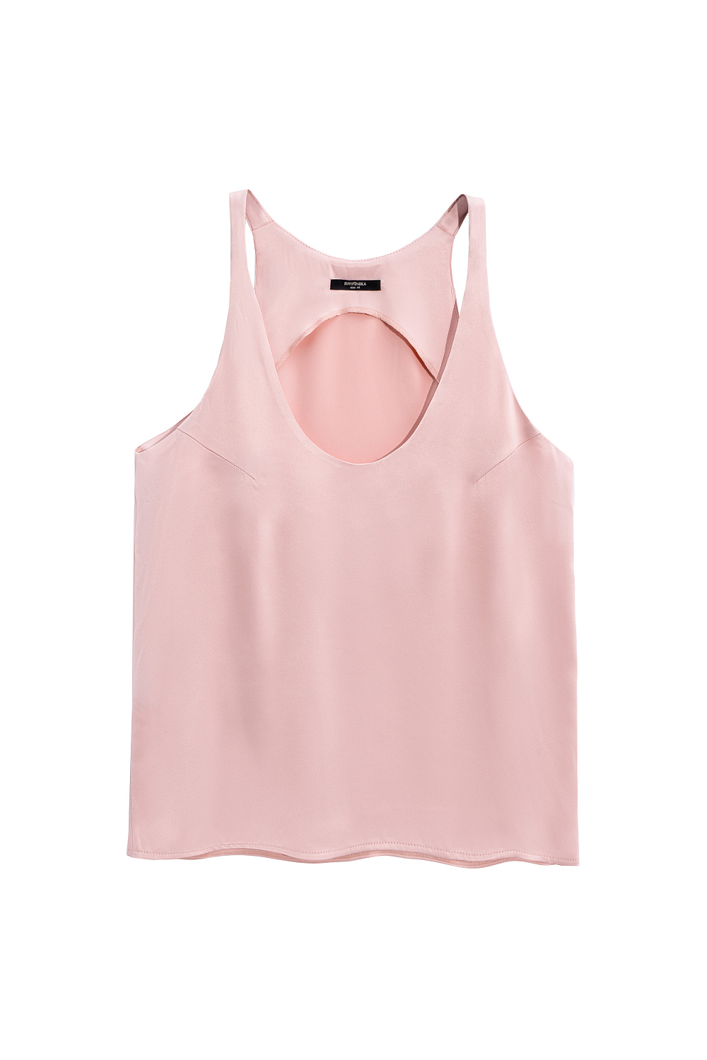T-shirt made of satin viscose. The model has a loose silhouette with thin straps and a deep neckline.