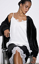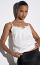 Top made of satin viscose, decorated with lace. Loose silhouette model with thin straps.