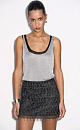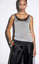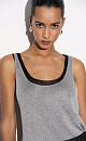 Translucent one-piece knitted T-shirt made of viscose with the addition of lurex. The model has a loose silhouette with thin straps and a deep neckline.
