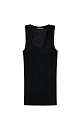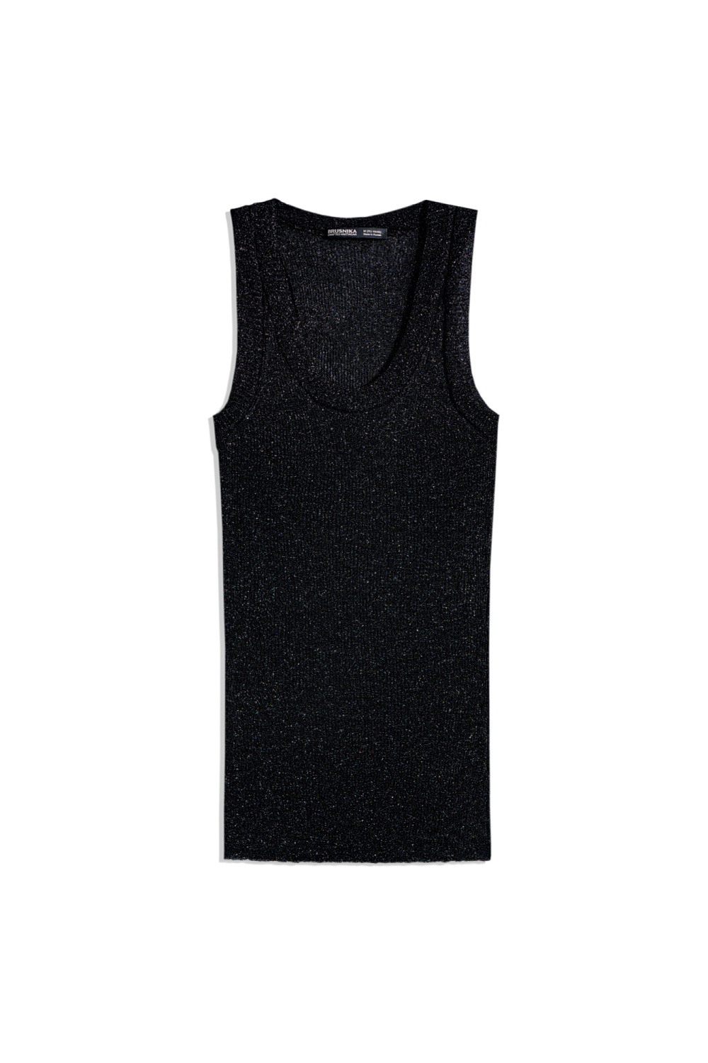 Knitted top made of viscose with lurex. Model with a U-shaped neckline and wide straps.