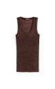 Knitted top made of viscose with lurex. Model with a U-shaped neckline and wide straps.