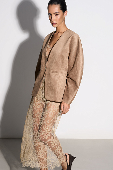 Top made of fine lace. Model with thin adjustable straps. The product is made without lining.