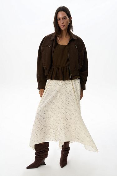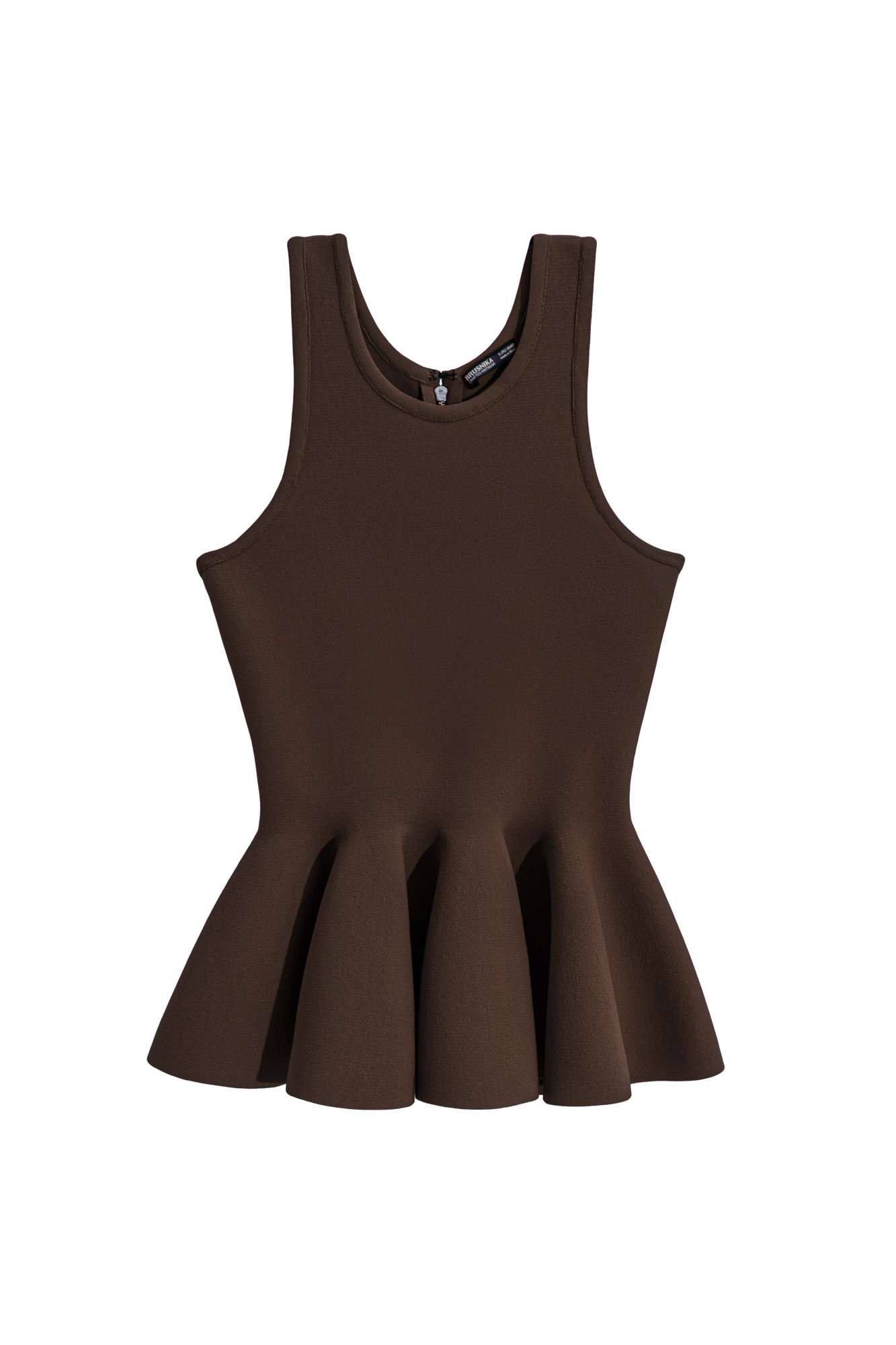 Knitted top in matte viscose. Model with wide straps and peplum. Zip fastening at the back. The product is unlined.