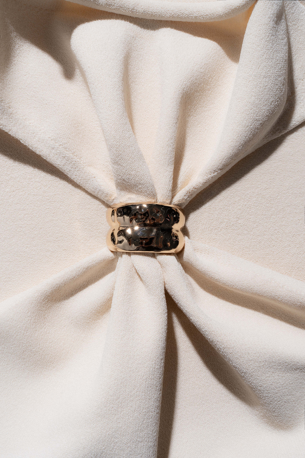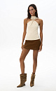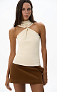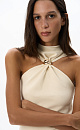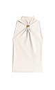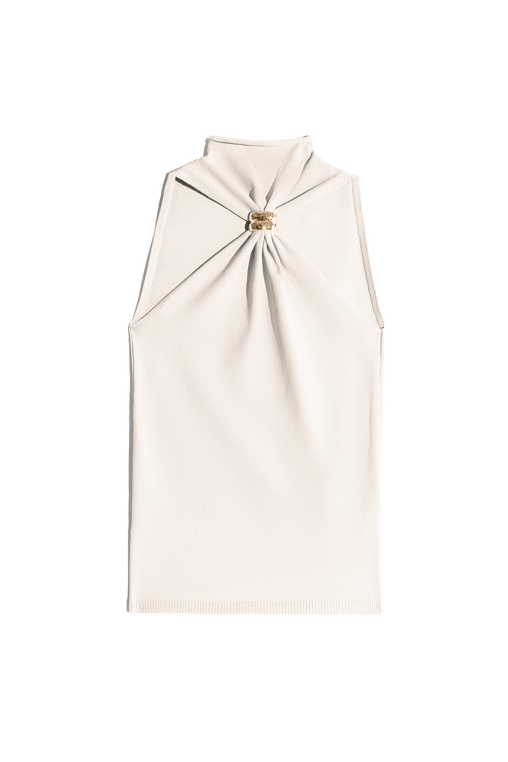 Knitted top made of viscose. Sleeveless model with American armhole and low collar. The product is decorated with a metal lintel.