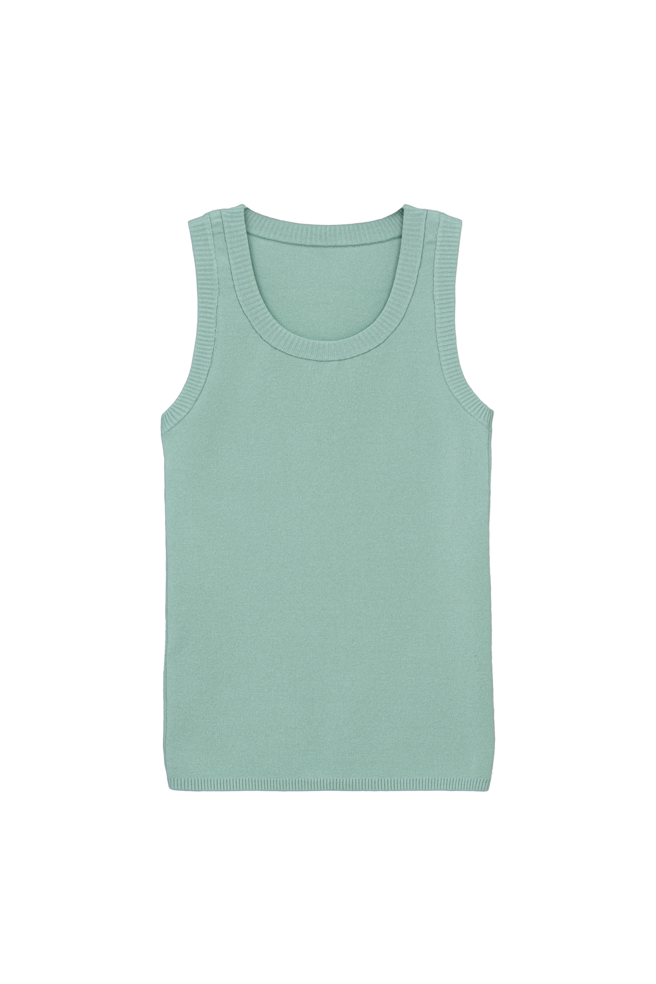 Long knit viscose top with a round neckline and open shoulders.