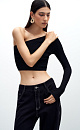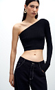 Ribbed viscose knit top. Fitted model with one sleeve.