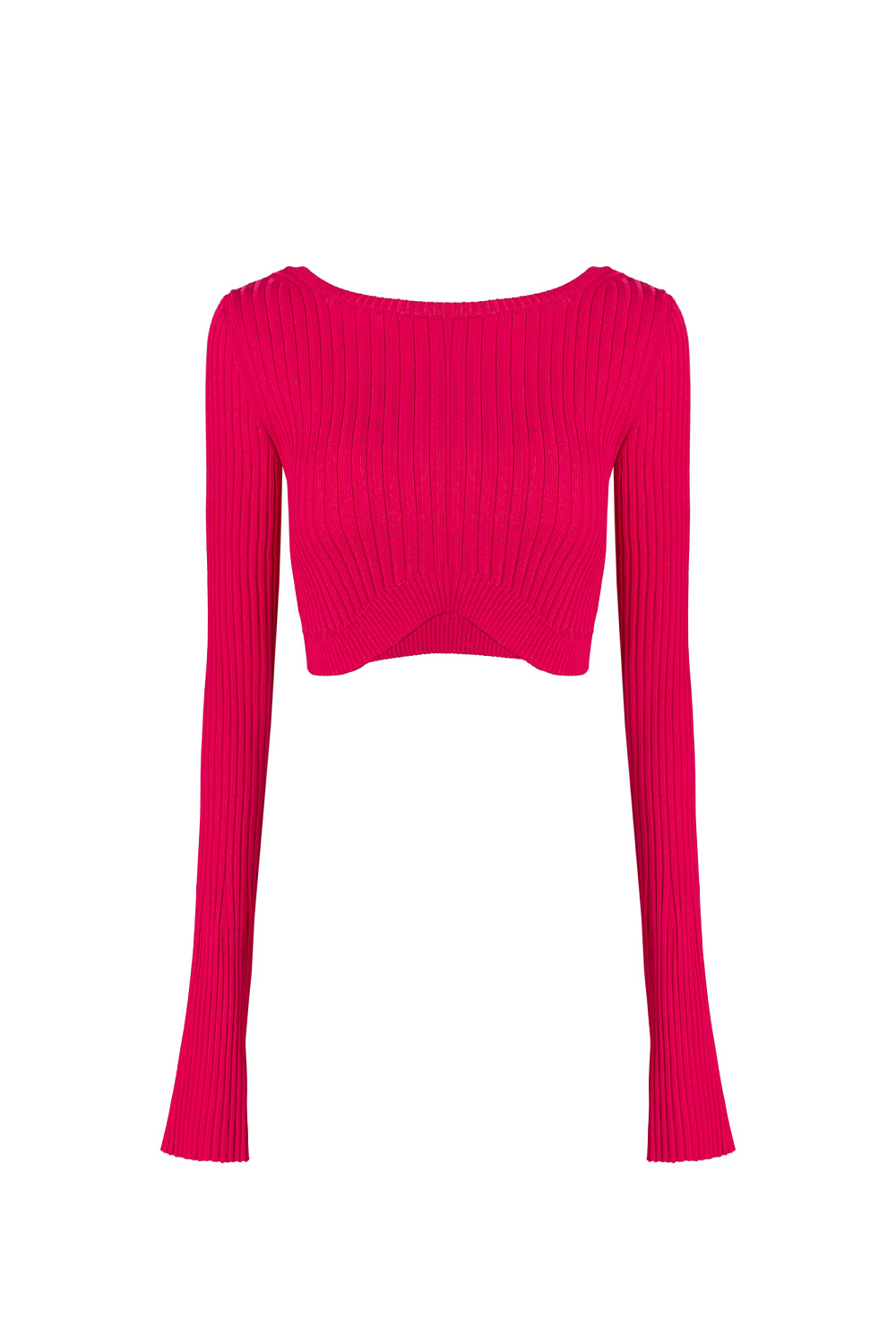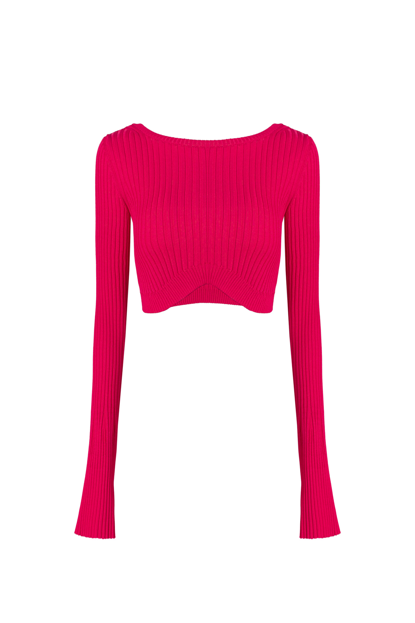 Viscose ribbed crop top. Fitted model with an open back. Pairs perfectly with a matching skirt.