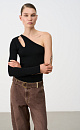 Viscose knit top. Asymmetric cut with one long sleeve and open shoulder. Decorative shoulder cut. Slim fit, textured fabric with small ribbing.