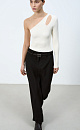 Viscose knit top. Asymmetric cut with one long sleeve and open shoulder. Decorative shoulder cut. Slim fit, textured fabric with small ribbing.