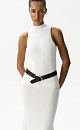 Knitted top made of cotton with the addition of viscose. A model with a high stand-up collar and a deep armhole. The collar of the product is made in fine ribbing.