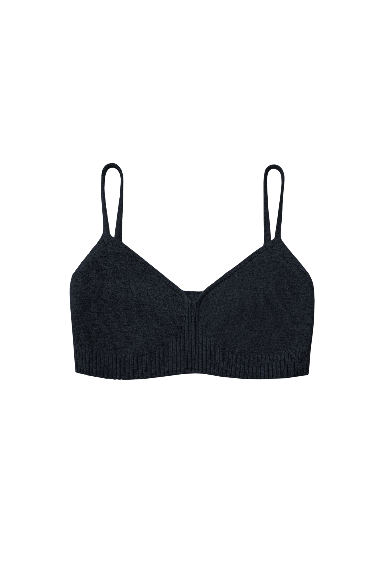 Basic knitted top made of cashmere and wool. Model with thin straps. knitted cups and ribbed elastic.