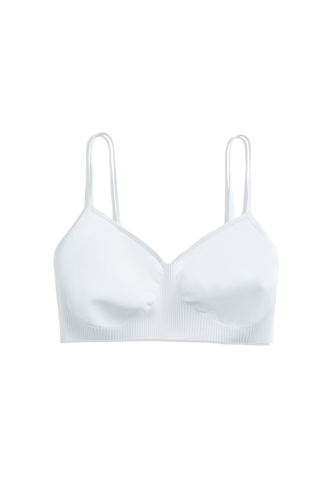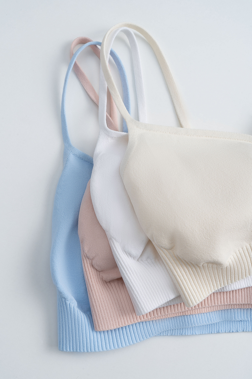 Seamless viscose knitted top. Model with thin straps and knitted cups.