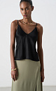 Satin top made of fine viscose. The model has a straight cut, thin straps and a deep V-neck.