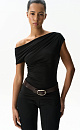 An asymmetrical modal top. A fitted silhouette with an emphasis on one shoulder. The product is decorated with draping and soft folds.
